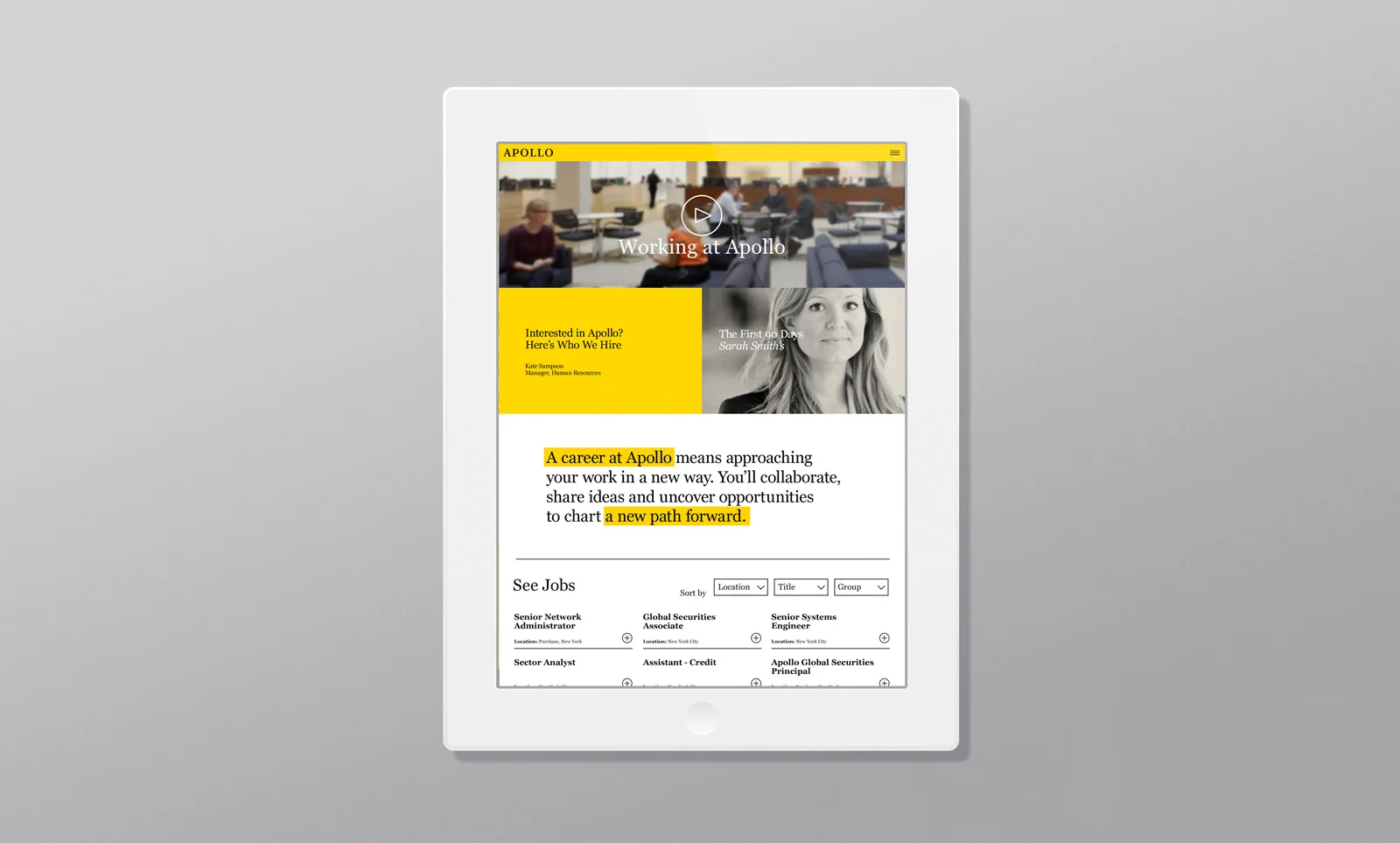 A sharp site that lets Apollo reshape their reputation and positively influence talent and counterparties.